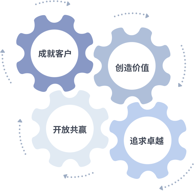 成就客户是一切决策的出发点,创造价值是衡量所有工作的标准,追求卓越是leyu.乐鱼(集团)做事做人的态度,开放共赢是leyu.乐鱼(集团)的格局也是最终的结果。价值观的齿轮环环相扣,推动着组织里的每个人不断向前。